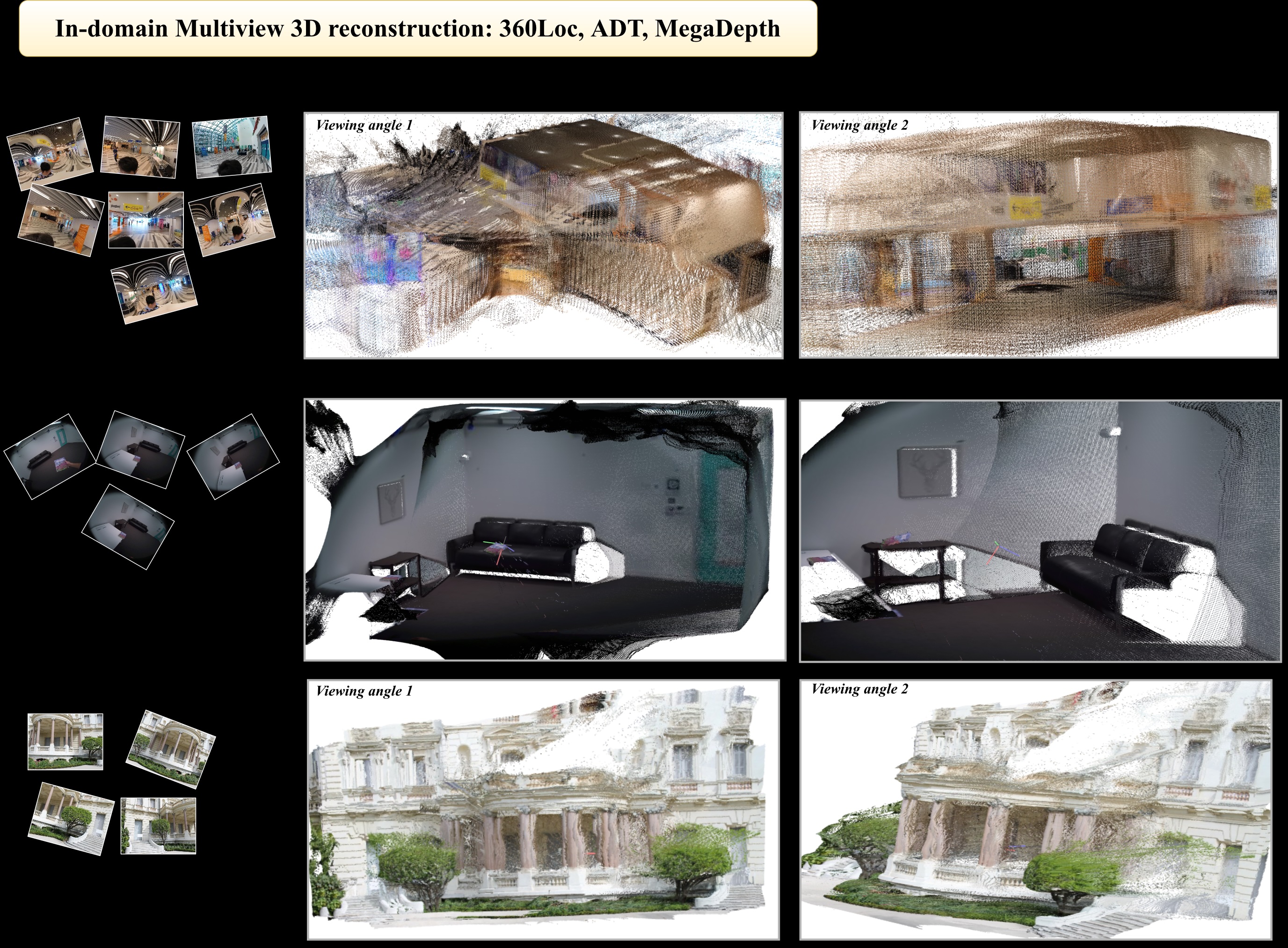 | Model | 2D3DS | MegaDepth | CO3Dv2 | 360Loc | ADT | |||||